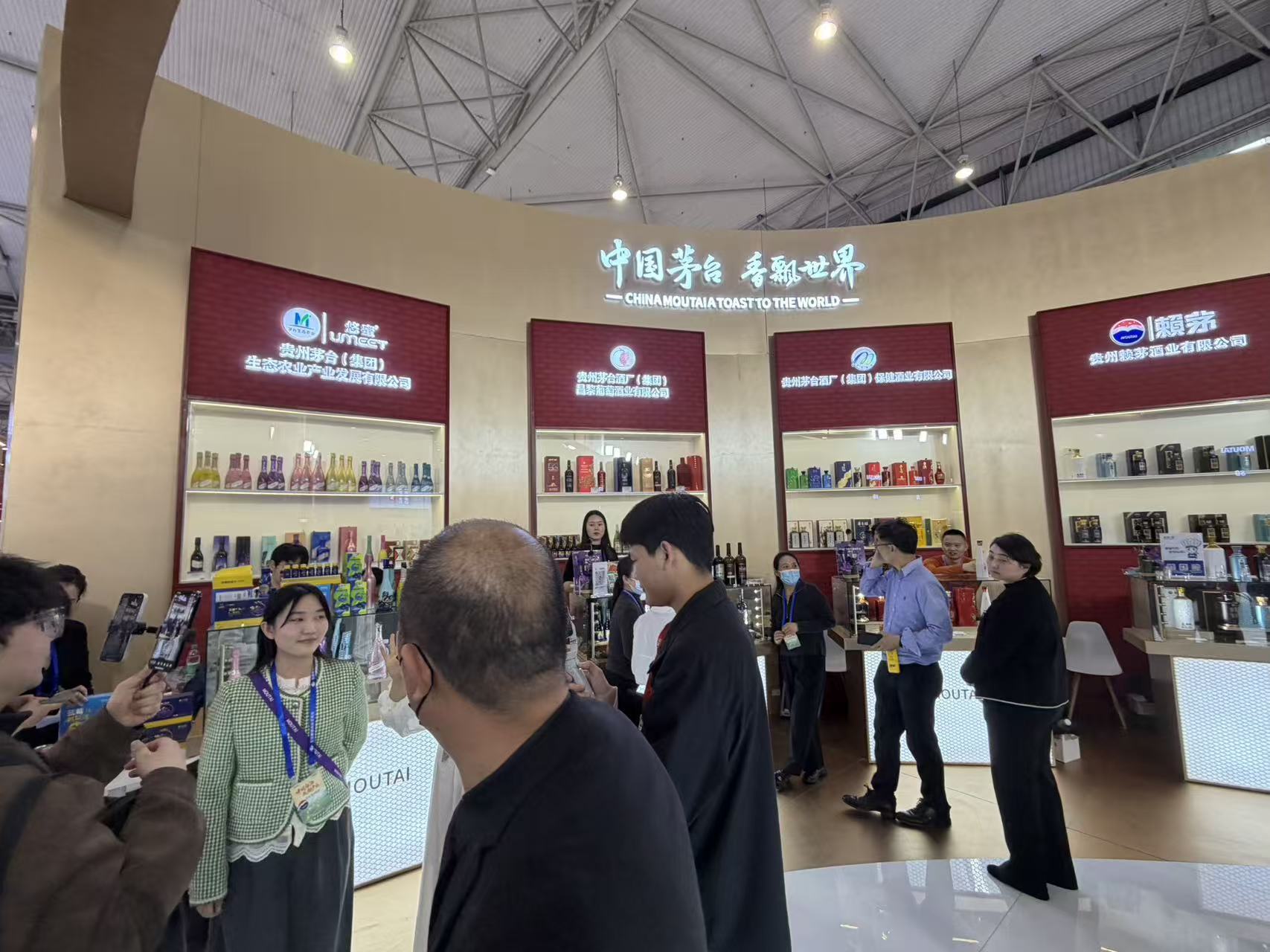 以茅台展台为例,该展台被一分为二,前面显眼位置集中展示飞天茅台、生肖茅台等核心产品,葡萄酒、气泡酒、保健酒、赖茅等则藏身后区,需要绕进去才能看到。